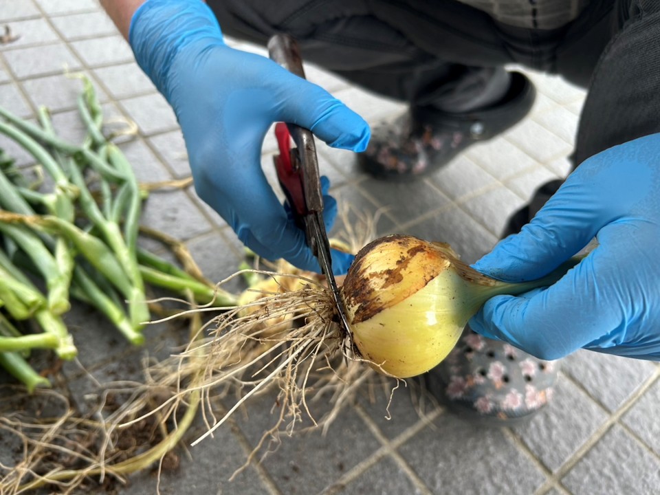 6月16日(月)に、昨年10月に植えた玉ねぎの収穫と2回目のスナップエンドウの収穫をしました!