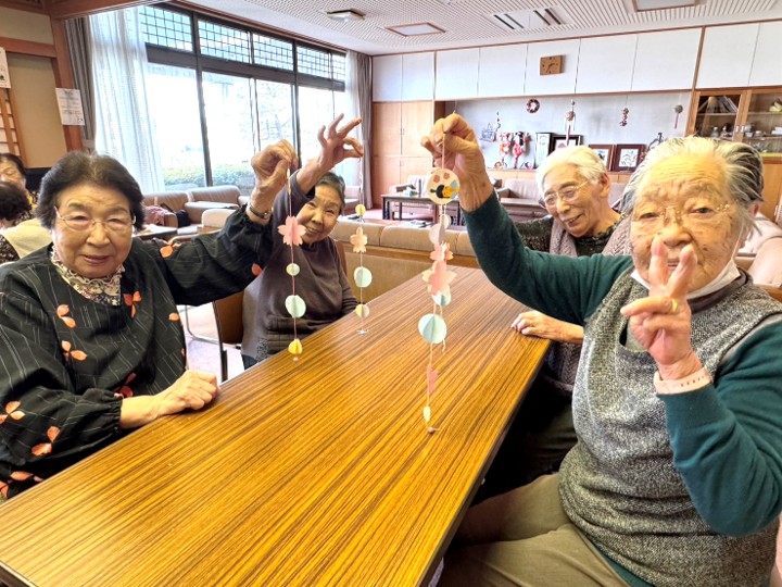 3月2日(月)に、健康館でひなまつりを行いました。ひなかざりを作ったあと、皆さんでケーキをいただきました♪