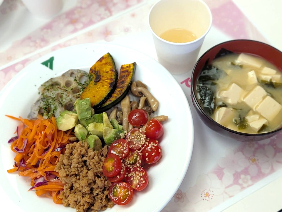 3月12日(木)に、「おしゃべり食堂」を開催しました♪今回のメニューは「ブッダボウル・お味噌汁・はちみつ生姜レモンゼリー」でした。